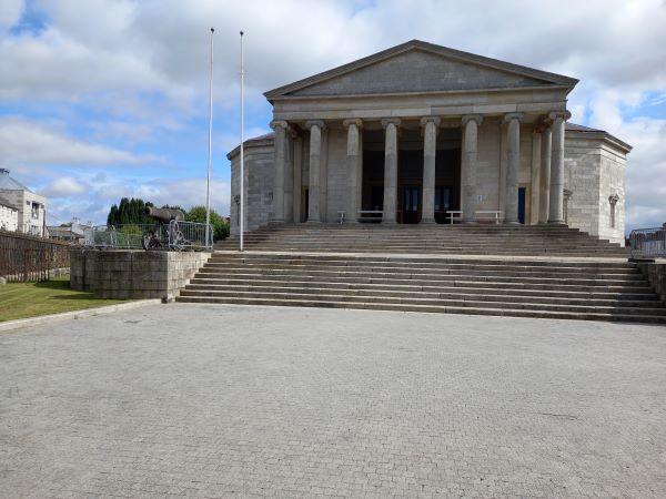 The cannon at the top of the steps outside comes from the Crimean War and commemorates the Irish casualties of that conflict. The courthouse is located on the site of a former quarry.