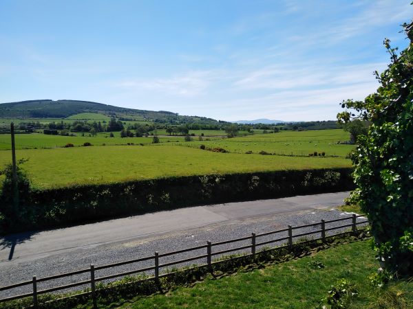 Pick your way up carefully through the rocks for about six or seven steps and you come to a grassy mound. From here there’s a terrific view of Kilalongford and Mount Leinster.
