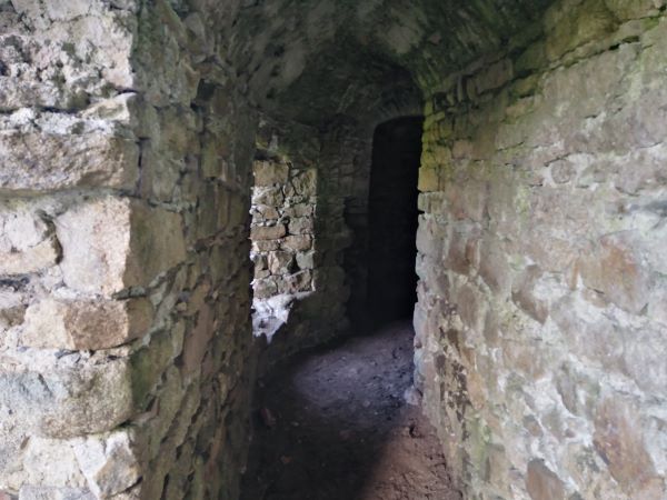 Turn around and now you’re looking down into what seems to be a large room in the castle. Carefully climb down the three or four steps to get a closer look. There’s lots of nettles and it can be very mucky so you may need wellingtons.