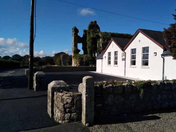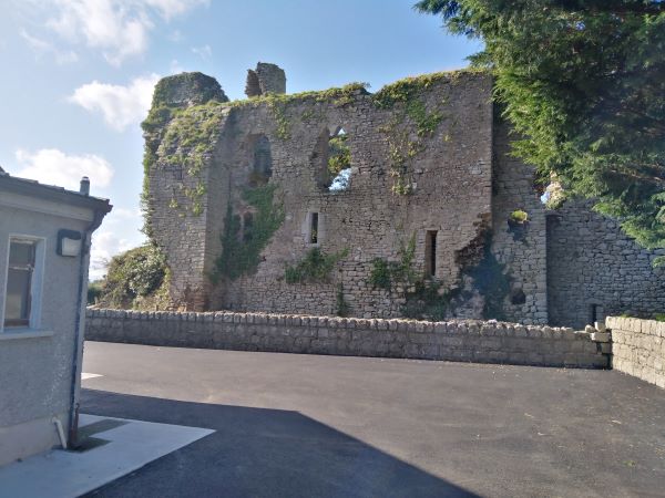 Pass Clonmore Prayer Garden, the sign for the Bullaun Stone, some houses and then you’ll come to what was once Clonmore National School and is now the Community Centre. You can park in here or in the laneway beside the castle.