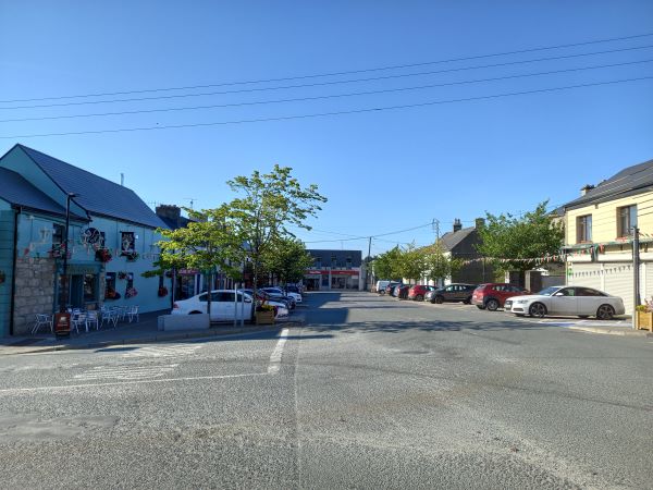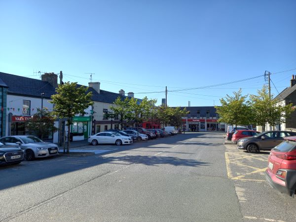 Junction of Water Street and Main StreetSo, let’s get our bearings. If you’re facing Supervalu (supermarket), right will bring you to Knockananna and left will bring you towards Baltinglass. The road straight behind you will bring you to Tinahely while the road behind you and to your left brings you towards Rathvilly or Carlow town.