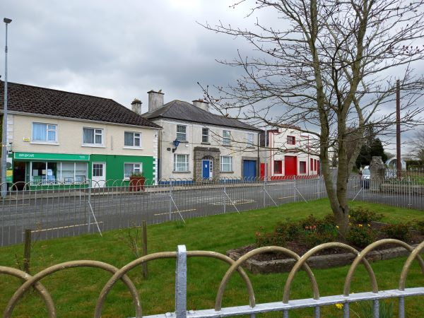 The most picturesque approach to the village is from Cuckoo’s Corner (where the R726 meets the N81). Taking this route, you come over the bridge then uphill and the village is revealed to you around a bend.