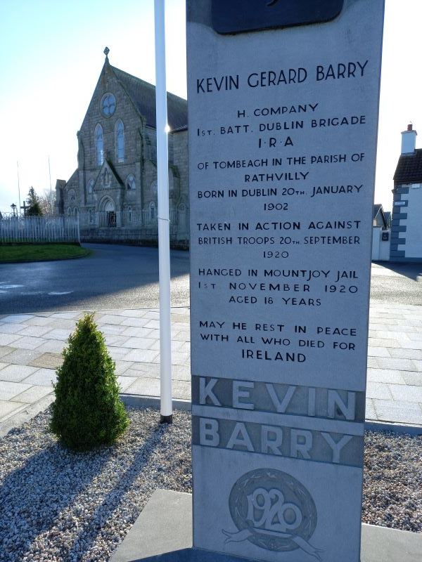 On the green in the centre of Rathvilly is the Kevin Barry Memorial - a monument to a local Irish patriot.