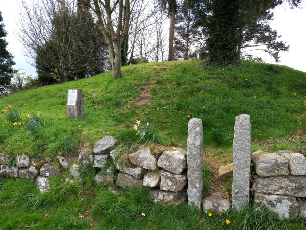 Rathvilly Motte is a mound of about 10 metres and is situated 1 kilometre outside the village on a crossroads in the townland of Knockroe. It may have been built to protect and defend the crossroads.