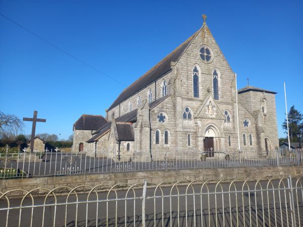 With many interesting features including a huge stained glass window and a mural depicting St. Patrick baptising the King of Leinster, the church is an impressive structure in the centre of the village.
